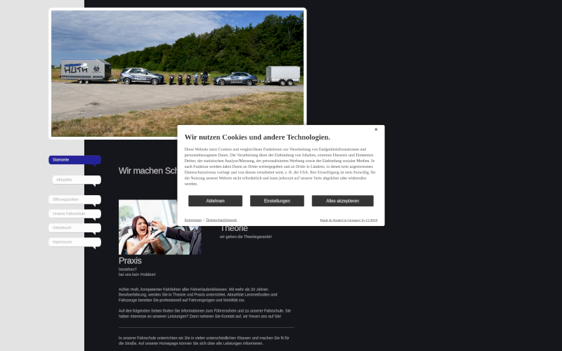 Entdecken Sie CCM19, den führenden Cookie Consent Manager speziell für Fahrschulen. Optimieren Sie Ihren Datenschutz! CCM19: Maßgeschneidert für Fahrschulen, sichert optimale Zustimmungsraten & deutschen Datenschutz – ohne Datenabfluss ins Ausland.