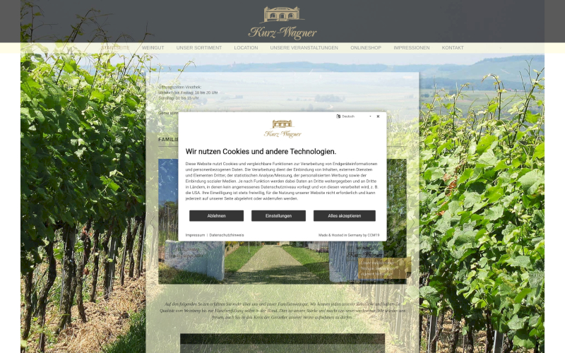 Entdecken Sie CCM19, den führenden Cookie Consent Manager speziell für Weinbauer. Optimieren Sie Ihre Webseite jetzt! Mehr Zustimmungen, echter deutschsprachiger Support und sicherer Datenschutz, ganz ohne Datenübertragung ins Ausland. Die ideale Wahl für Ihre Branche.