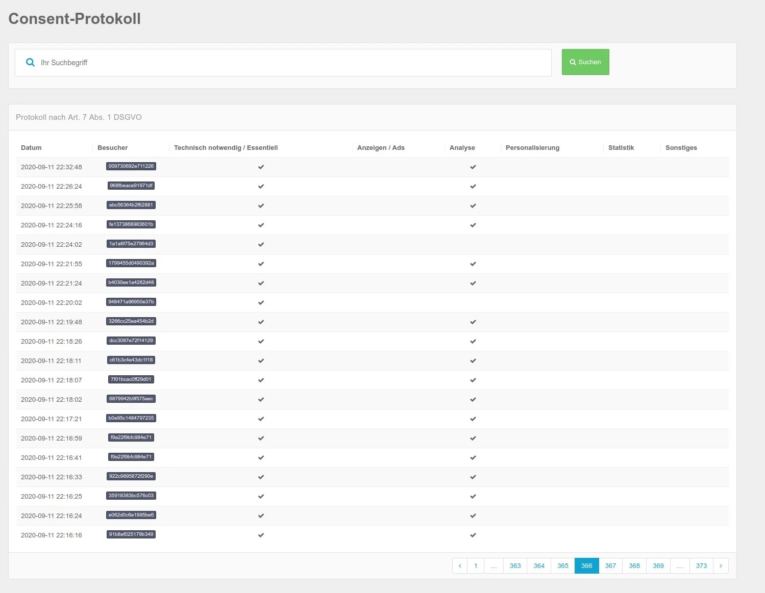 Die DSGVO fordert, die Einwilligung jedes Nutzers zu protokollieren (Art. 7 Abs. 1 DSGVO). Unser Cookie Consent Manager ist die perfekte Lösung für alle, die sicherstellen möchten, dass ihre Website diesen Anforderungen der DSGVO entspricht. Mit unserem Tool können Sie die Einwilligung jedes Nutzers protokollieren und dokumentieren - ganz einfach und unkompliziert.