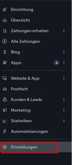 Navigieren Sie in Ihrer Website-Verwaltung zu den Einstellungen, die Sie am unteren Ende der linken Navigationsleiste finden.