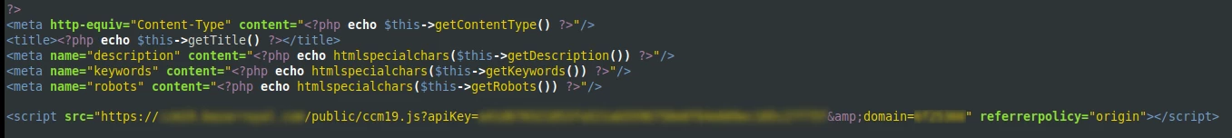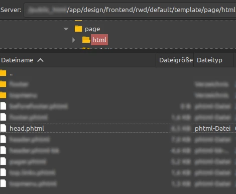 - Anpassung des Magento-Templates über FTP: Da Magento im Standard-Backend keine direkte Möglichkeit bietet, das CCM19-Skript im oberen Bereich des Seitenkopfs (Head) einzufügen, müssen Sie die entsprechende Template-Datei manuell über FTP bearbeiten.