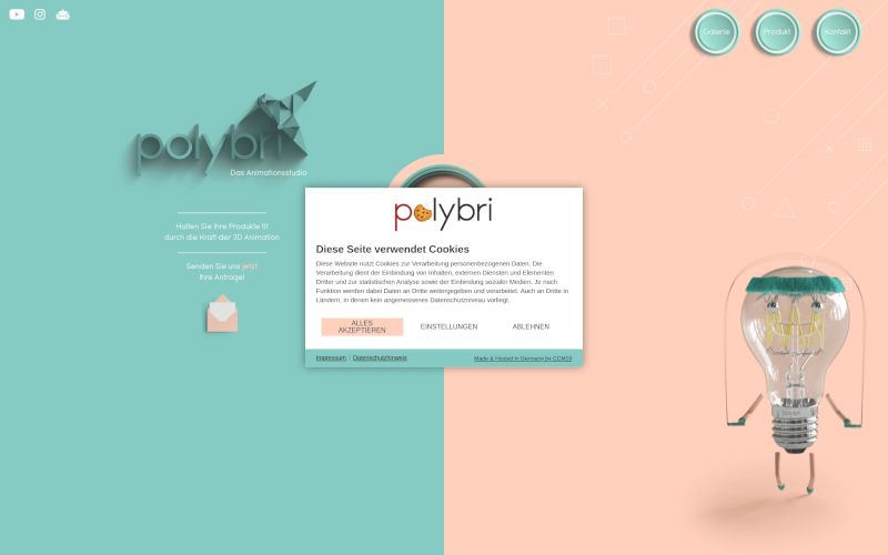 Das Herzstück von CCM19 für Ihre 3D-Visualisierungsunternehmen Webseite, Onlineshop oder sonstige Applikation - der Cookie Banner für 3D-Visualisierungsunternehmen. Mit diesem Banner realisieren Sie auf Ihrer Webseite die notwendige Zustimmung zum Setzen von diversen Cookies und zum ausführen von (Tracking)Skripten.