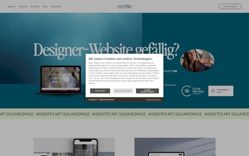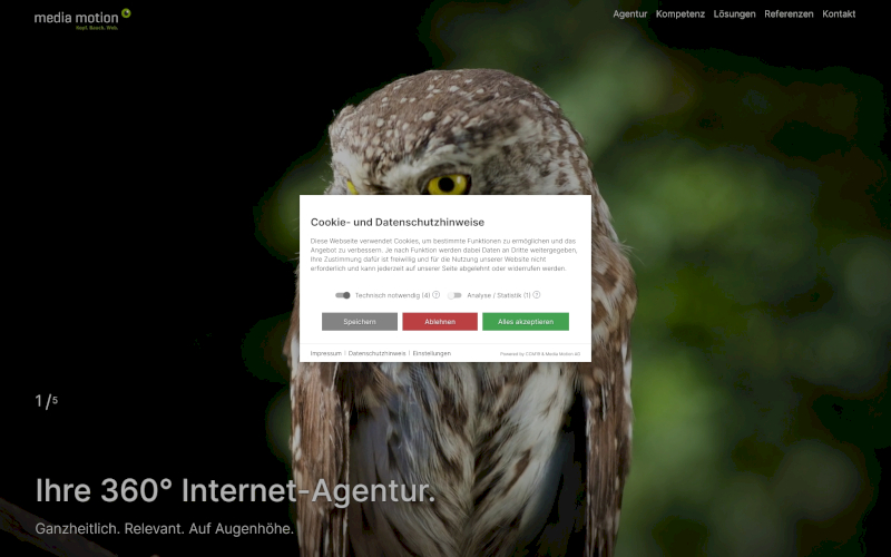 Das Herzstück von CCM19 für Ihre Agenturen Webseite, Onlineshop oder sonstige Applikation - der Cookie Banner für Agenturen. Mit diesem Banner realisieren Sie auf Ihrer Webseite die notwendige Zustimmung zum Setzen von diversen Cookies und zum ausführen von (Tracking)Skripten.