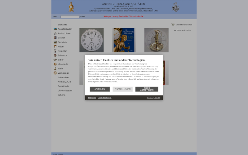 Das Herzstück von CCM19 für Ihre Antiquariate Webseite, Onlineshop oder sonstige Applikation - der Cookie Banner für Antiquariate. Mit diesem Banner realisieren Sie auf Ihrer Webseite die notwendige Zustimmung zum Setzen von diversen Cookies und zum ausführen von (Tracking)Skripten.