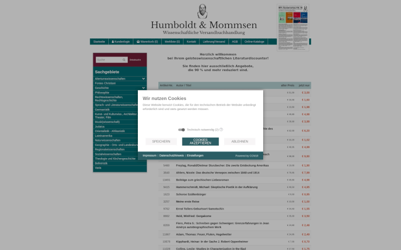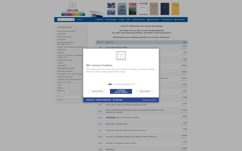 Entdecken Sie mit CCM19, den führenden Cookie Consent Manager, maßgeschneidert für Antiquariate. Optimieren Sie jetzt Ihre Consent-Raten! Profitieren Sie von sicherer Datenhandhabung, ausschließlich in Deutschland, und unserem deutschsprachigen, top-bewerteten Support. Ideal für Ihr Antiquariat!