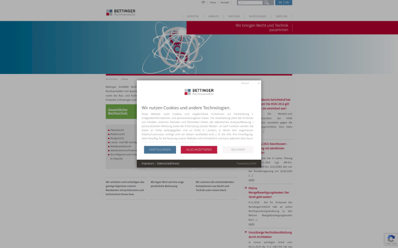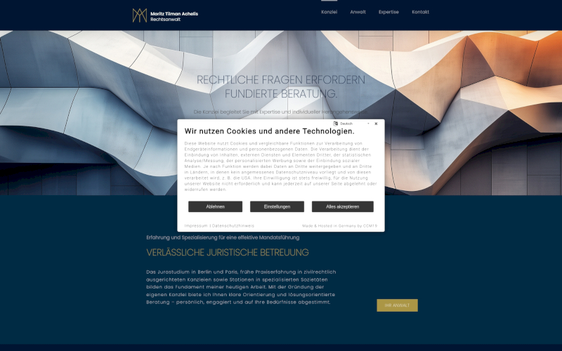Das Herzstück von CCM19 für Ihre Anwälte Webseite, Onlineshop oder sonstige Applikation - der Cookie Banner für Anwälte. Mit diesem Banner realisieren Sie auf Ihrer Webseite die notwendige Zustimmung zum Setzen von diversen Cookies und zum ausführen von (Tracking)Skripten.