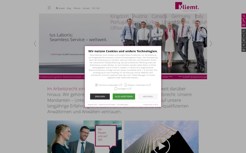 Hinzu kommt, dass CCM19 die regional verschiedenen Datenschutzgesetze respektiert und automatisch die zutreffenden Einstellungen auf Grundlage der IP-Adresse anzeigt. Mit der Option, aus über 24 Sprachen zu wählen, garantiert dieser Cookie Consent Manager zudem eine hohe Nutzerfreundlichkeit für internationale Besucher der Website von Anwälten.