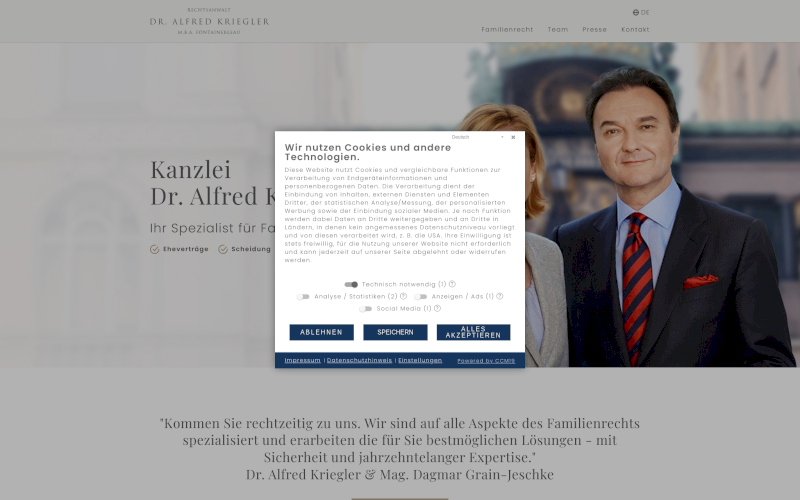 Der digitale Fußabdruck einer Anwaltskanzlei sollte die Seriosität und Vertrauenswürdigkeit widerspiegeln, die man von einem Rechtsexperten erwartet. Ein entscheidender Aspekt dabei ist die Einhaltung der Datenschutz-Grundverordnung (DSGVO) und des Telekommunikation-Telemedien-Datenschutz-Gesetzes (TDDDG), was ohne einen starken Cookie Consent Manager nahezu unmöglich wäre. Für Anwälte empfiehlt sich daher die Nutzung von CCM19, einer Lösung, die nicht nur rechtliche Sicherheit gewährt, sondern auch das Vertrauen der Website-Besucher stärkt.