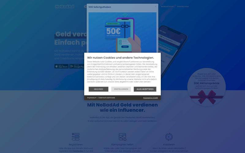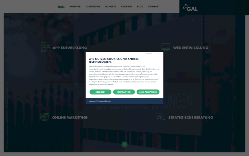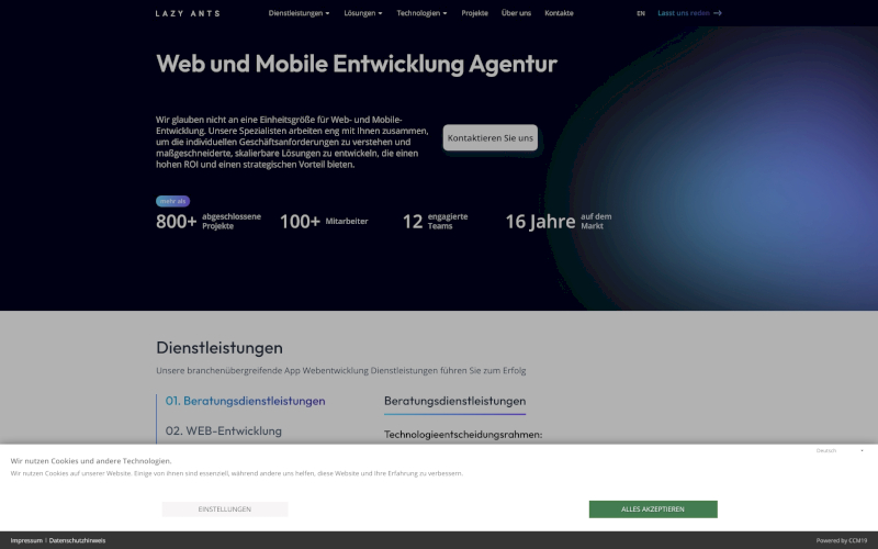 Das Herzstück von CCM19 für Ihre App-Entwicklung Webseite, Onlineshop oder sonstige Applikation - der Cookie Banner für App-Entwicklung. Mit diesem Banner realisieren Sie auf Ihrer Webseite die notwendige Zustimmung zum Setzen von diversen Cookies und zum ausführen von (Tracking)Skripten.