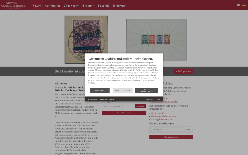 Cookie Banner für Auktionen