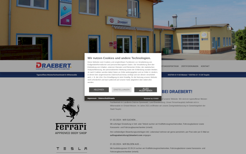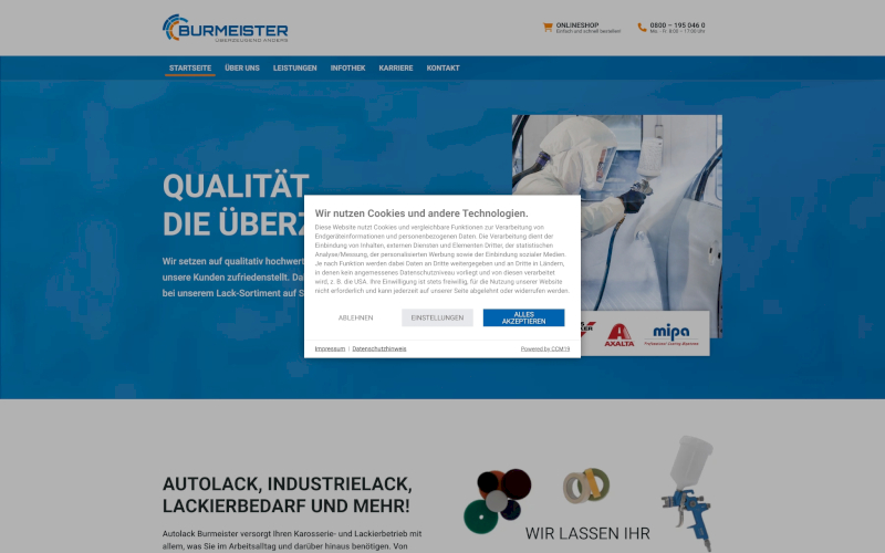 Entdecken Sie CCM19, den Cookie Consent Manager speziell für Autolackierereien. Optimieren Sie den Datenschutz Ihres Unternehmens! Mehr Besucherzustimmungen und eine Lösung, die ausschließlich in Deutschland betrieben wird, warten auf Sie. Entwickelt für Ihre Branche!