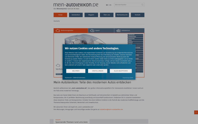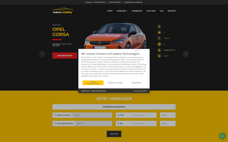 Das Herzstück von CCM19 für Ihre Autovermietungen Webseite, Onlineshop oder sonstige Applikation - der Cookie Banner für Autovermietungen. Mit diesem Banner realisieren Sie auf Ihrer Webseite die notwendige Zustimmung zum Setzen von diversen Cookies und zum ausführen von (Tracking)Skripten.