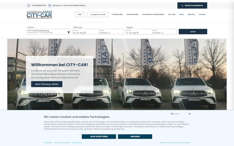 Für Autovermietungen bietet CCM19 eine Lösung, die speziell darauf ausgerichtet ist, den Cookie Consent Prozess nicht nur gesetzeskonform, sondern auch benutzerfreundlich zu gestalten. Mit CCM19 können Autovermietungen sichergestellt sein, dass ihre Websites DSGVO- und TDDDG-konform sind, ohne auf die Dienste von US-Anbietern wie AWS oder Google Cloud zurückgreifen zu müssen. Dies gewährleistet eine erhöhte Sicherheit und Souveränität über die gespeicherten Daten.