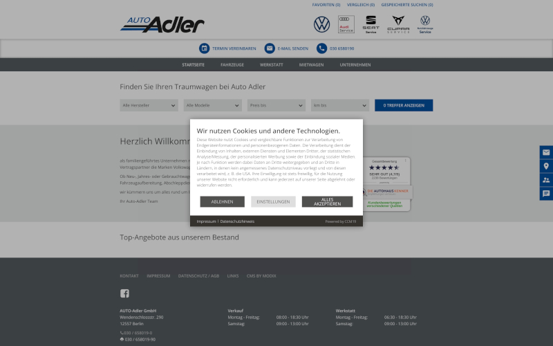 Entdecken Sie den besten Cookie Consent Manager speziell für Autowerkstätten: CCM19! Optimieren Sie jetzt Ihre Datenschutzpraktiken.CCM19 bietet deutschsprachigen Support, maximale Zustimmungsraten und sichere Datenhaltung in Deutschland - ideal für Ihre Werkstatt!