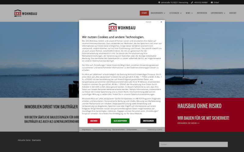 Entdecken Sie CCM19, den maßgeschneiderten Cookie Consent Manager speziell für Bauträger. Optimieren Sie jetzt Ihren Datenschutz! Steigern Sie die Zustimmung Ihrer Website-Besucher mit unserer branchenspezifischen Lösung. CCM19: Sicher, effektiv, und genau für Sie entwickelt.