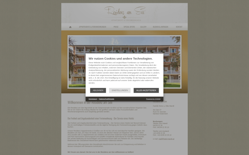 Das Herzstück von CCM19 für Ihre Beherbergungsbetriebe Webseite, Onlineshop oder sonstige Applikation - der Cookie Banner für Beherbergungsbetriebe. Mit diesem Banner realisieren Sie auf Ihrer Webseite die notwendige Zustimmung zum Setzen von diversen Cookies und zum ausführen von (Tracking)Skripten.