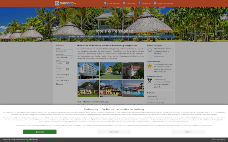 Die Suche nach dem perfekten Cookie Consent Manager (CCM) für Beherbergungsbetriebe kann herausfordernd sein. Die Anforderungen an Datenschutz und Nutzerfreundlichkeit sind hoch, doch mit CCM19 finden Betreiber von Beherbergungsbetrieben eine Lösung, die nicht nur diesen Anforderungen gerecht wird, sondern auch die Einhaltung der DSGVO und des TDDDG gewährleistet.