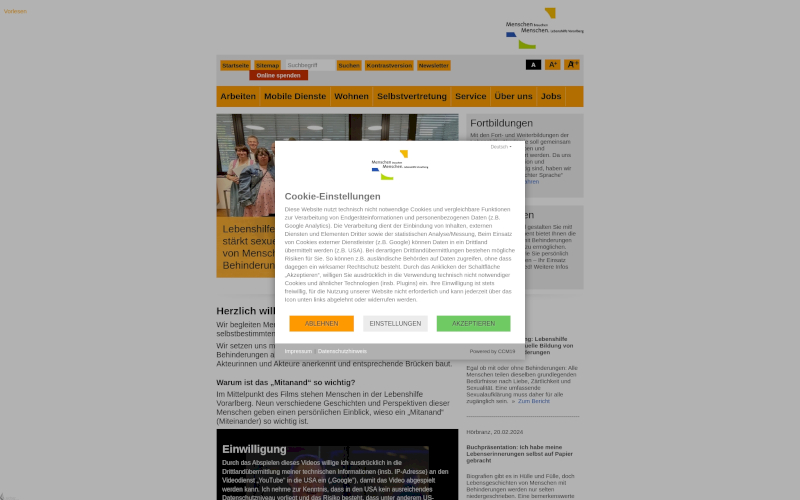 Cookie Consent Manager für Behinderten- und Suchtkrankenhilfe
