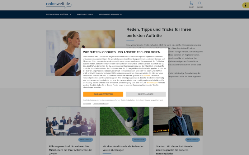 Das Herzstück von CCM19 für Ihre Beratung und Coaching Webseite, Onlineshop oder sonstige Applikation - der Cookie Banner für Beratung und Coaching. Mit diesem Banner realisieren Sie auf Ihrer Webseite die notwendige Zustimmung zum Setzen von diversen Cookies und zum ausführen von (Tracking)Skripten.