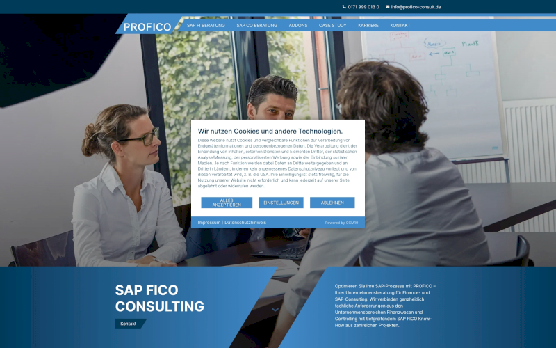 Entdecken Sie CCM19: Die maßgeschneiderte Cookie Consent Manager Lösung speziell für Beratungsfirmen. Optimieren Sie Ihren Datenschutz jetzt! Maßgeschneidert für Ihre Branche - CCM19 bietet optimale Datenschutzlösungen, mehr Zustimmungen & deutschen Support, ohne Datenübertragung ins Ausland.