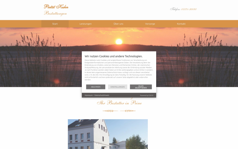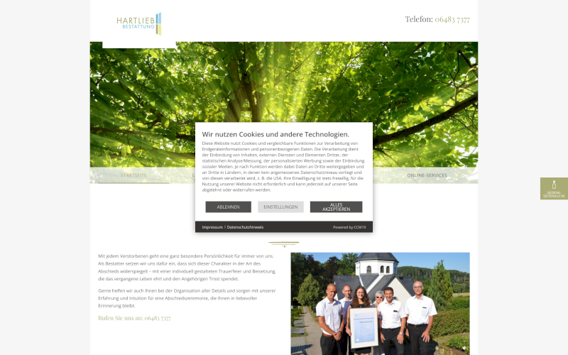 Das Herzstück von CCM19 für Ihre Bestatter Webseite, Onlineshop oder sonstige Applikation - der Cookie Banner für Bestatter. Mit diesem Banner realisieren Sie auf Ihrer Webseite die notwendige Zustimmung zum Setzen von diversen Cookies und zum ausführen von (Tracking)Skripten.