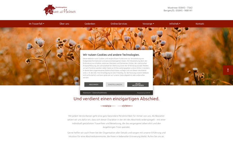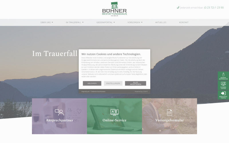 Für Bestatter ist der sensible Umgang mit Kundendaten Teil des täglichen Geschäfts. Ein spezialisierter Cookie Consent Manager wie CCM19 stellt nicht nur die Einhaltung der Datenschutzgrundverordnung (DSGVO) und des Telekommunikation-Telemedien-Datenschutz-Gesetzes (TDDDG) sicher, sondern trägt auch dazu bei, das Vertrauen Ihrer Webseitenbesucher zu stärken.