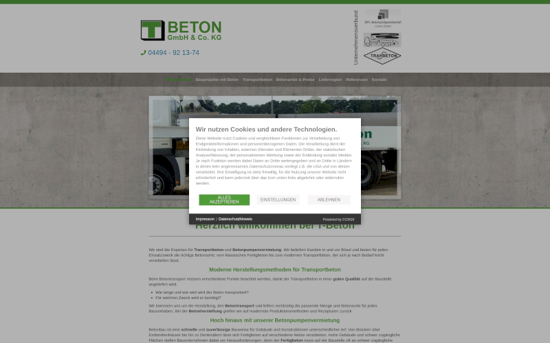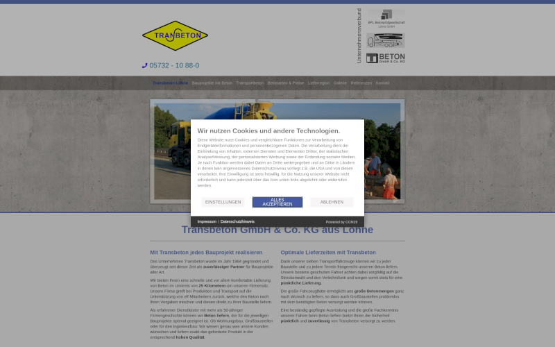 Entdecken Sie CCM19: Den maßgeschneiderten Cookie Consent Manager speziell für Betonhersteller. Optimieren Sie Ihre Zustimmungsquoten jetzt! Einzigartige Datenschutzlösung mit echtem Support auf Deutsch, perfekt auf Ihre Branche zugeschnitten. Wählen Sie Sicherheit und Effizienz mit CCM19.