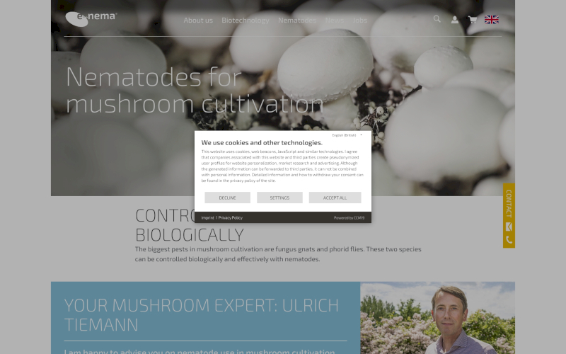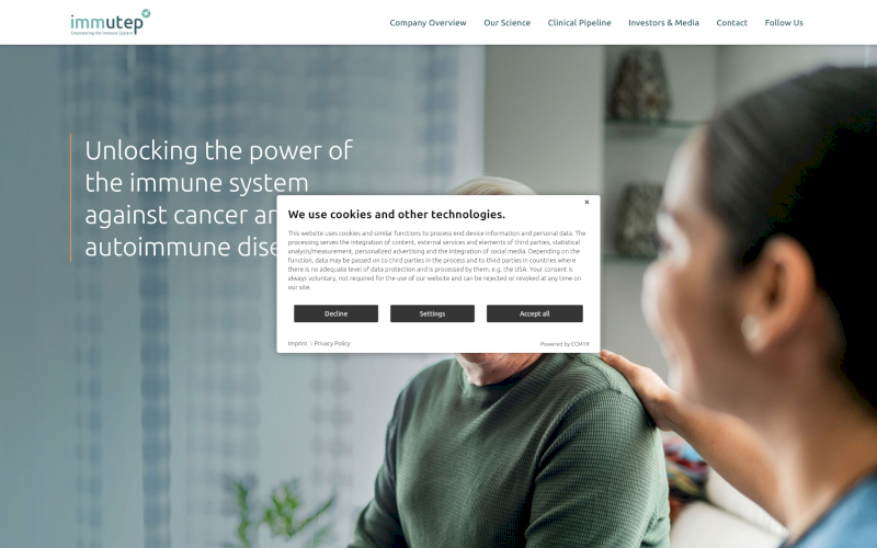 Das Herzstück von CCM19 für Ihre Biotechnologie Webseite, Onlineshop oder sonstige Applikation - der Cookie Banner für Biotechnologie. Mit diesem Banner realisieren Sie auf Ihrer Webseite die notwendige Zustimmung zum Setzen von diversen Cookies und zum ausführen von (Tracking)Skripten.