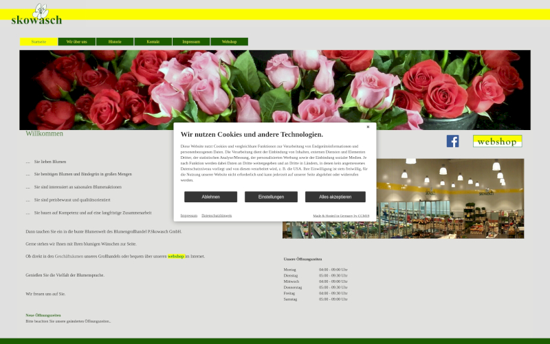 Entdecken Sie CCM19, den Cookie Consent Manager speziell für Blumenläden. Optimieren Sie Datenschutz und erhöhen Sie Zustimmungen! Sicherer, deutscher Datenschutz ohne Datenübertragung ins Ausland. Perfekt für Blumenläden entwickelt – mit erstklassigem Support.