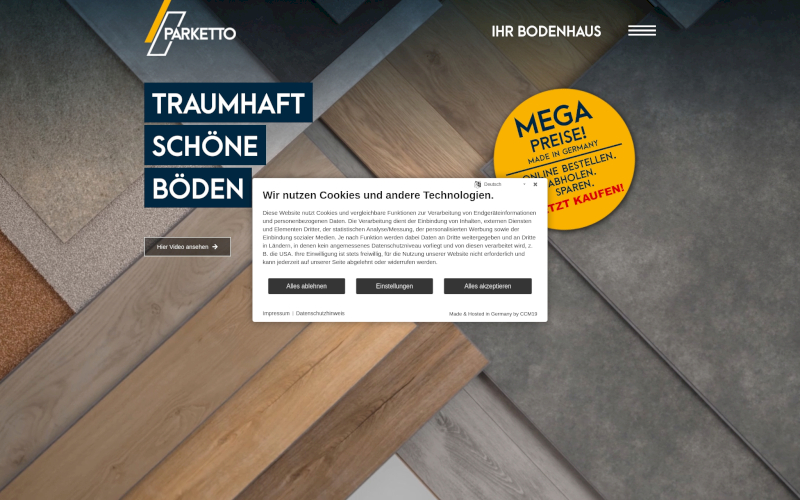 Das Herzstück von CCM19 für Ihre Bodenleger Webseite, Onlineshop oder sonstige Applikation - der Cookie Banner für Bodenleger. Mit diesem Banner realisieren Sie auf Ihrer Webseite die notwendige Zustimmung zum Setzen von diversen Cookies und zum ausführen von (Tracking)Skripten.