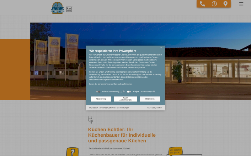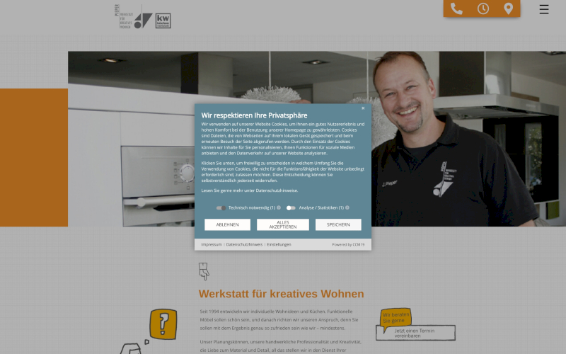Das Herzstück von CCM19 für Ihre Büromöbelhersteller Webseite, Onlineshop oder sonstige Applikation - der Cookie Banner für Büromöbelhersteller. Mit diesem Banner realisieren Sie auf Ihrer Webseite die notwendige Zustimmung zum Setzen von diversen Cookies und zum ausführen von (Tracking)Skripten.