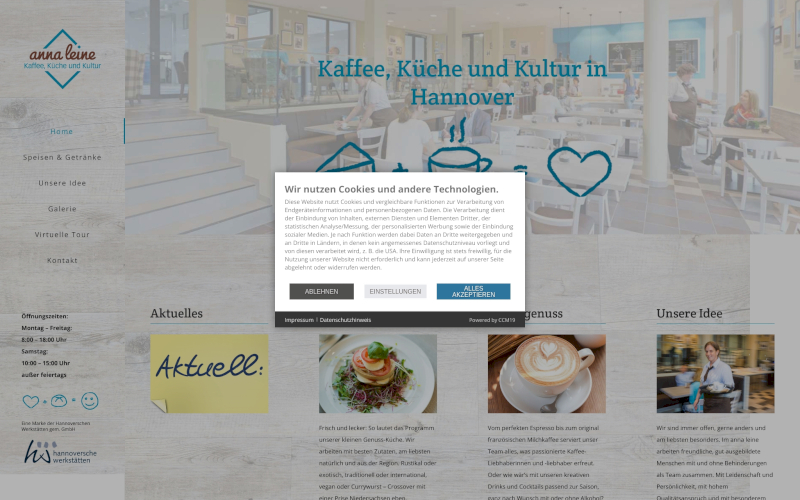 Das Herzstück von CCM19 für Ihre Burger-Restaurants Webseite, Onlineshop oder sonstige Applikation - der Cookie Banner für Burger-Restaurants. Mit diesem Banner realisieren Sie auf Ihrer Webseite die notwendige Zustimmung zum Setzen von diversen Cookies und zum ausführen von (Tracking)Skripten.