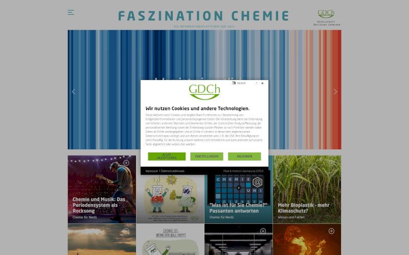 Cookie Banner für Chemie & Rohstoffe, Pharma