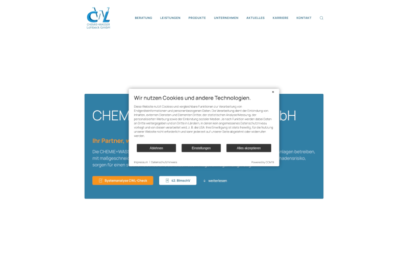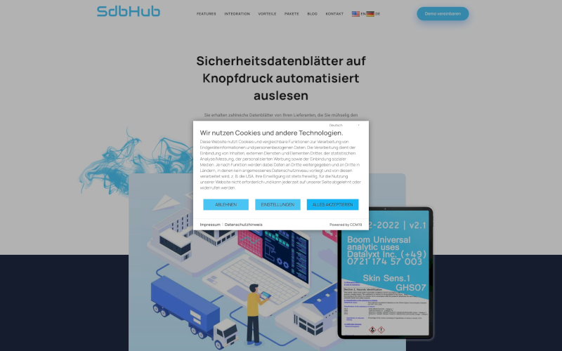 Entdecken Sie CCM19: Ihren maßgeschneiderten Cookie Consent Manager für Chemie & Rohstoffe und Pharma. Optimieren Sie Ihre Datenschutzstrategie jetzt! Erhöhen Sie Besucherzustimmungen mit CCM19 - der sicheren, deutschen Lösung speziell für Ihre Branche. Unabhängig und unterstützt durch Experten!