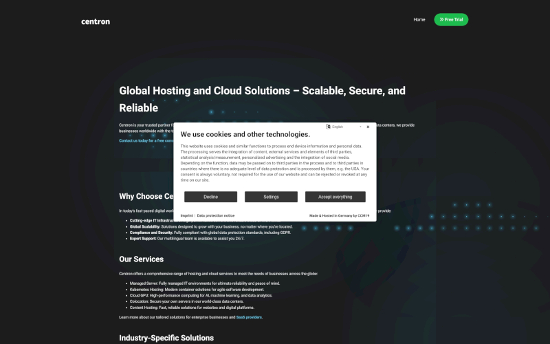 Entdecken Sie CCM19, den Cookie Consent Manager optimiert für Cloud Computing - Sicher, effizient & nutzerfreundlich! Unsere Lösung bietet Datenschutzoptimierung, erhöht Besucherzustimmungen und sichert Daten ausschließlich in Deutschland - speziell für Ihre Branche.