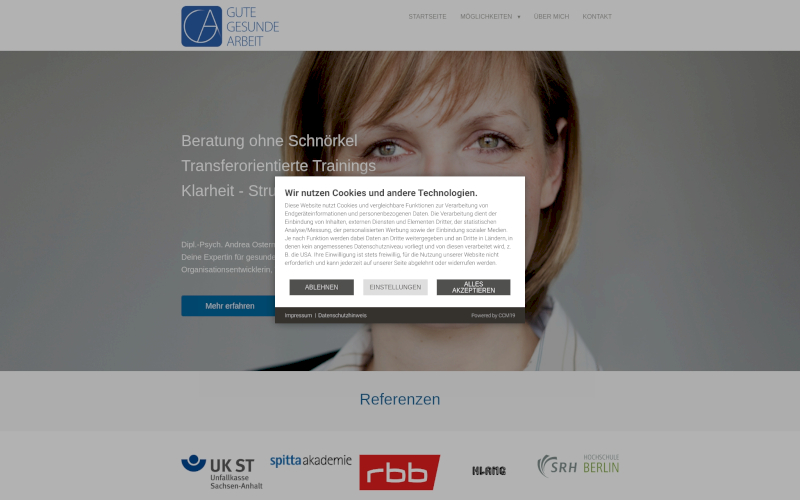 Entdecken Sie CCM19, den maßgeschneiderten Cookie Consent Manager speziell für die Coaching-Branche. Optimieren Sie Ihre Zustimmungsraten! Vertrauen Sie auf eine Lösung, die Datenschutz ernst nimmt, mit exzellentem Support & ohne Datenübertragung ins Ausland. Ideal für Coaching-Profis!