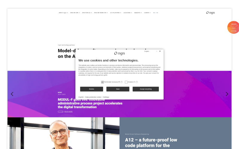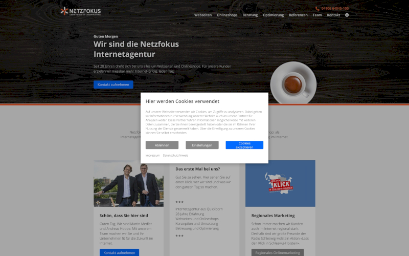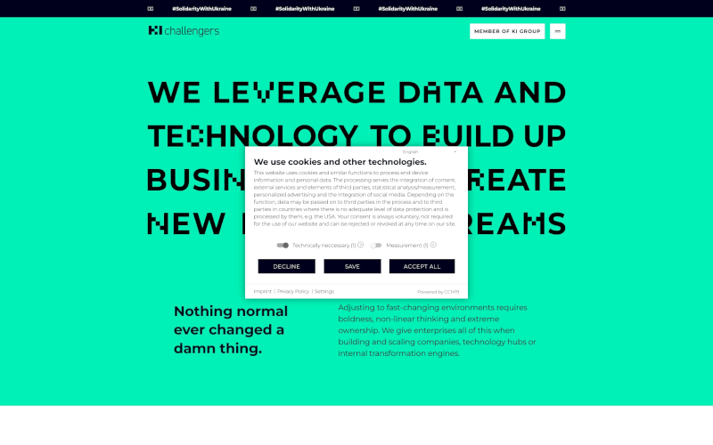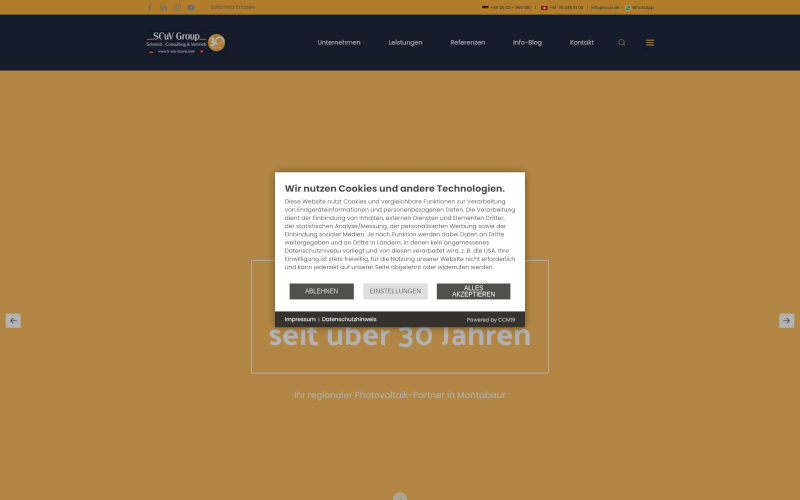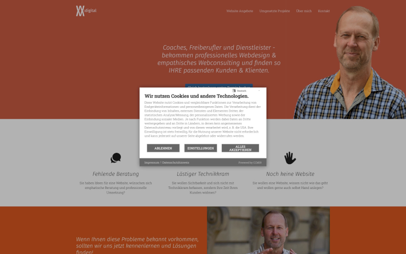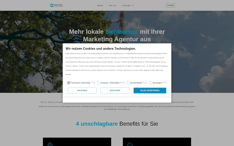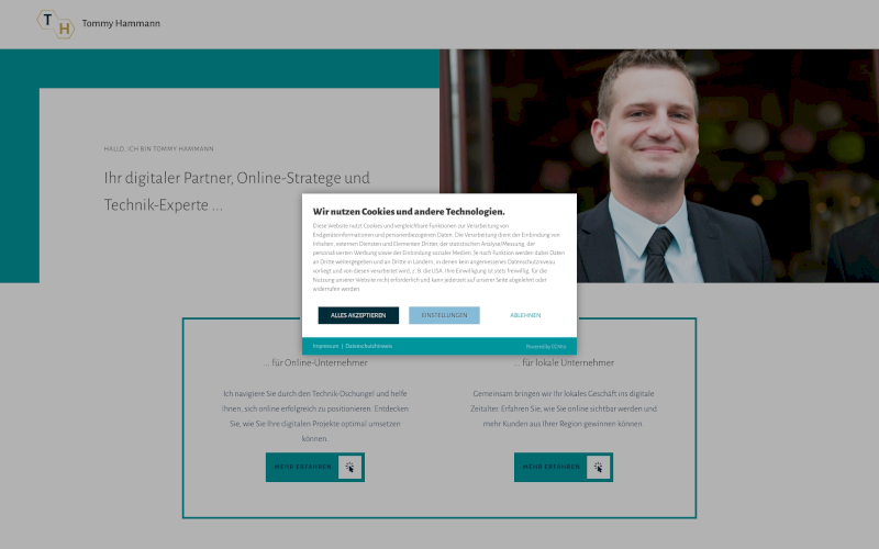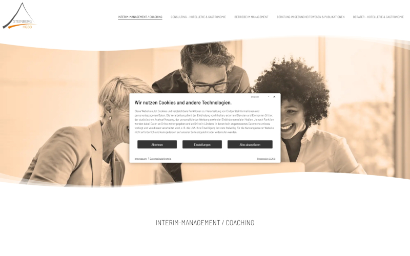Das Herzstück von CCM19 für Ihre Consulting Webseite, Onlineshop oder sonstige Applikation - der Cookie Banner für Consulting. Mit diesem Banner realisieren Sie auf Ihrer Webseite die notwendige Zustimmung zum Setzen von diversen Cookies und zum ausführen von (Tracking)Skripten.