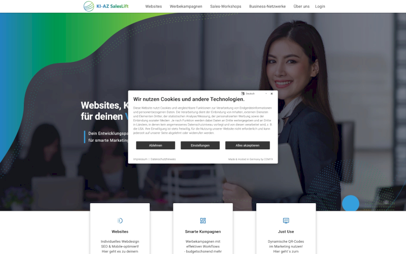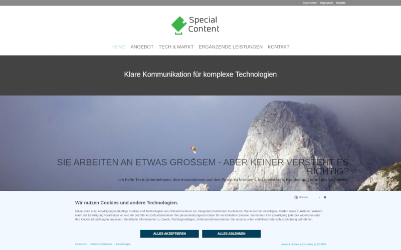Das Herzstück von CCM19 für Ihre Content Marketing Webseite, Onlineshop oder sonstige Applikation - der Cookie Banner für Content Marketing. Mit diesem Banner realisieren Sie auf Ihrer Webseite die notwendige Zustimmung zum Setzen von diversen Cookies und zum ausführen von (Tracking)Skripten.