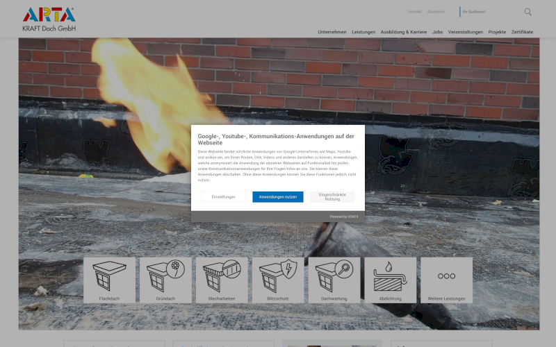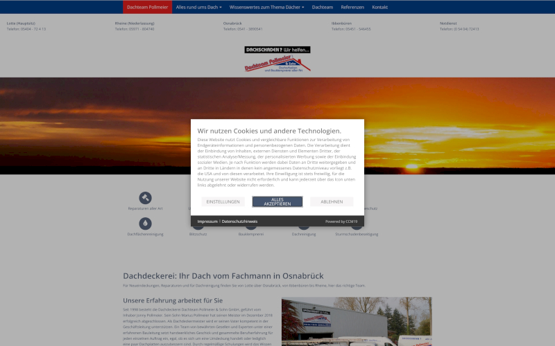 Das Herzstück von CCM19 für Ihre Dachdecker Webseite, Onlineshop oder sonstige Applikation - der Cookie Banner für Dachdecker. Mit diesem Banner realisieren Sie auf Ihrer Webseite die notwendige Zustimmung zum Setzen von diversen Cookies und zum ausführen von (Tracking)Skripten.