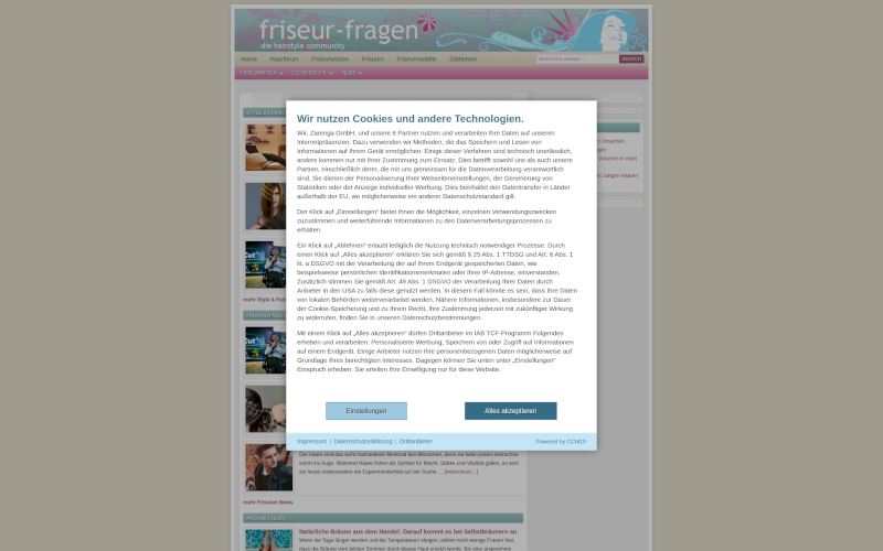 Das Herzstück von CCM19 für Ihre Damenfriseure Webseite, Onlineshop oder sonstige Applikation - der Cookie Banner für Damenfriseure. Mit diesem Banner realisieren Sie auf Ihrer Webseite die notwendige Zustimmung zum Setzen von diversen Cookies und zum ausführen von (Tracking)Skripten.