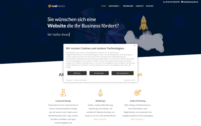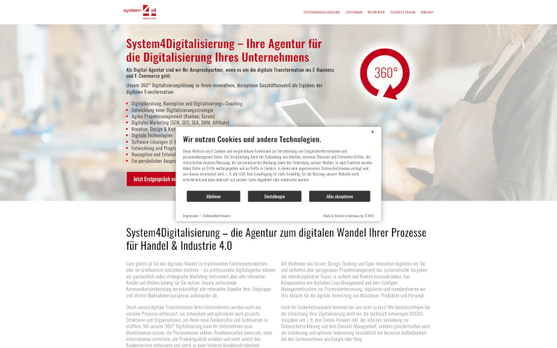 Entdecken Sie CCM19: Den Cookie Consent Manager, maßgeschneidert für Digitalagenturen. Optimieren Sie jetzt Datenschutz! Maximieren Sie Besucherzustimmung mit einer Lösung, die speziell für Ihre Branche entwickelt wurde. Wählen Sie zwischen OnPremise oder Cloud – sicher & effizient!