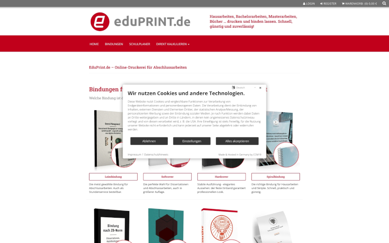 CCM19 bietet einen DSGVO- und TDDDG-konformen Cookie Consent Manager, der speziell für die komplexen Anforderungen von Druckereien entwickelt wurde. Die Kombination aus hoher rechtlicher Sicherheit, einer benutzerfreundlichen Oberfläche und der Möglichkeit zur Anpassung macht CCM19 zu einem unverzichtbaren Tool für jede Druckerei, die ihren Online-Auftritt seriös und gesetzeskonform gestalten möchte.