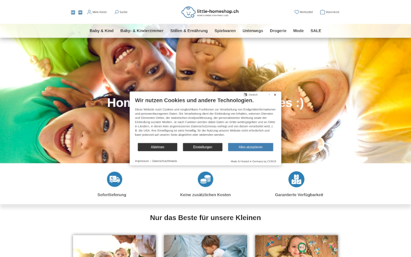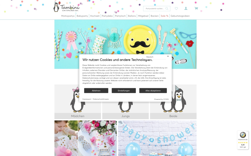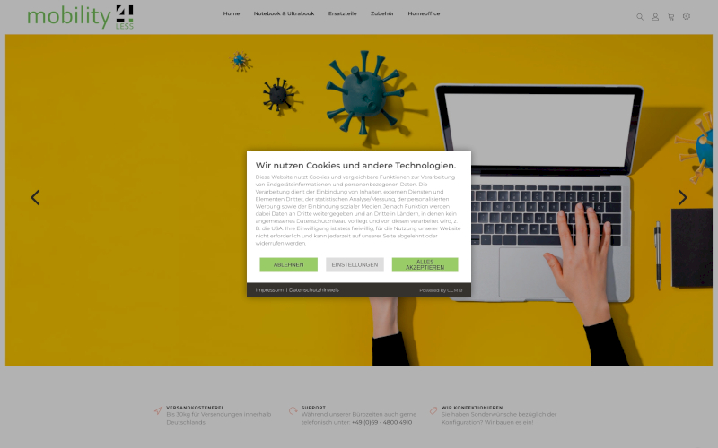 Das Herzstück von CCM19 für Ihre E-Commerce, Einzel & Großhandel Webseite, Onlineshop oder sonstige Applikation - der Cookie Banner für E-Commerce, Einzel & Großhandel. Mit diesem Banner realisieren Sie auf Ihrer Webseite die notwendige Zustimmung zum Setzen von diversen Cookies und zum ausführen von (Tracking)Skripten.