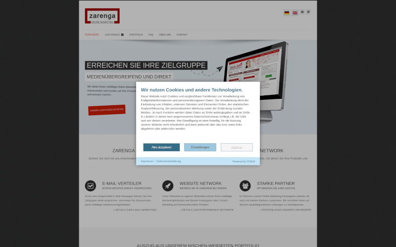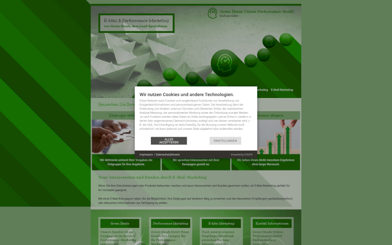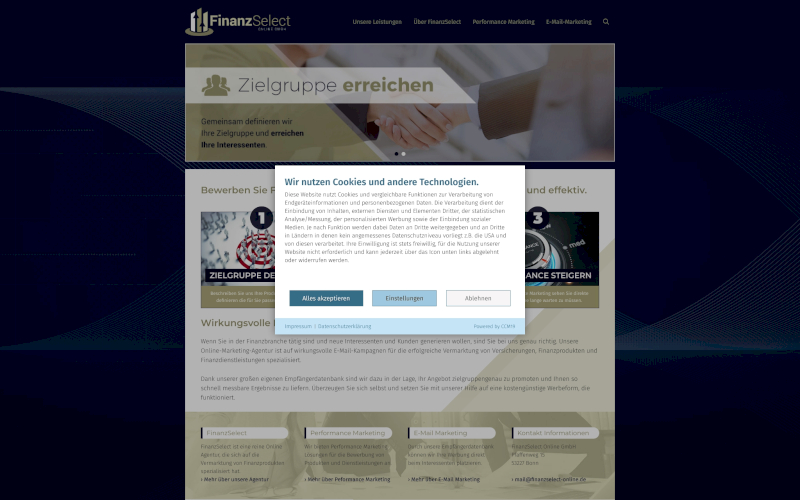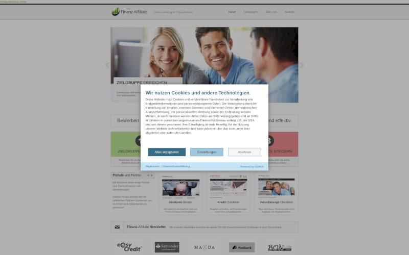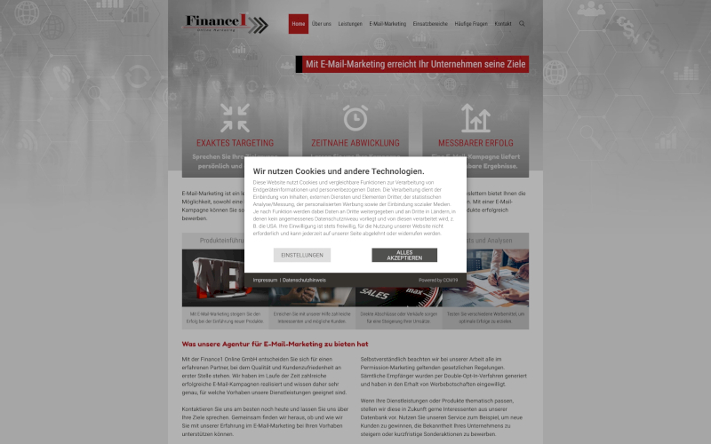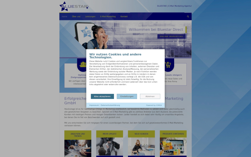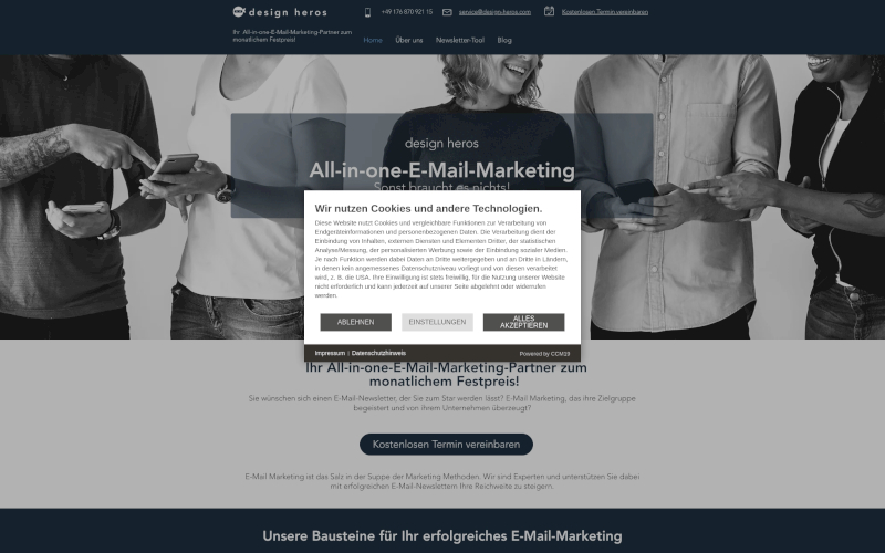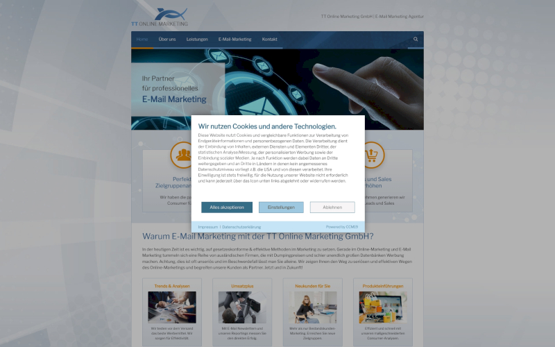 Das Herzstück von CCM19 für Ihre E-Mail-Marketing Webseite, Onlineshop oder sonstige Applikation - der Cookie Banner für E-Mail-Marketing. Mit diesem Banner realisieren Sie auf Ihrer Webseite die notwendige Zustimmung zum Setzen von diversen Cookies und zum ausführen von (Tracking)Skripten.
