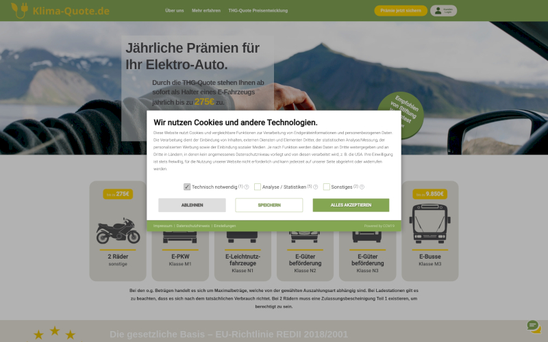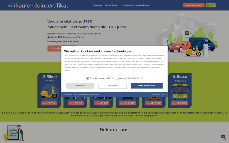 In der schnelllebigen Welt der E-Mobilität ist der Schutz persönlicher Daten und die Einhaltung datenschutzrechtlicher Bestimmungen ein Muss. Der Cookie Consent Manager (CCM19) bietet eine maßgeschneiderte Lösung, um die Anforderungen der Datenschutz-Grundverordnung (DSGVO) und des Telekommunikation-Telemedien-Datenschutz-Gesetzes (TDDDG) zu erfüllen, speziell für die anspruchsvollen Bedürfnisse der E-Mobilität Branche.