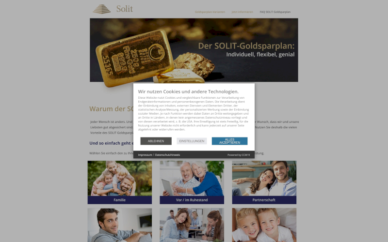 Das Herzstück von CCM19 für Ihre Edelmetallhändler Webseite, Onlineshop oder sonstige Applikation - der Cookie Banner für Edelmetallhändler. Mit diesem Banner realisieren Sie auf Ihrer Webseite die notwendige Zustimmung zum Setzen von diversen Cookies und zum ausführen von (Tracking)Skripten.