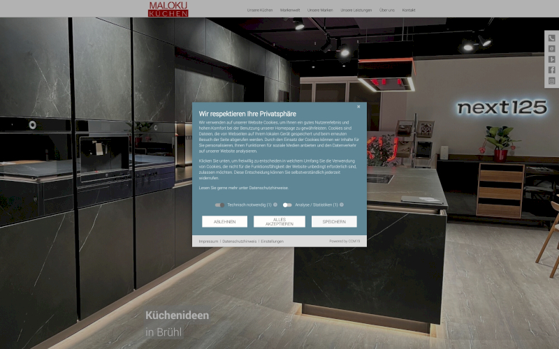 Das Herzstück von CCM19 für Ihre Einbauküchen Webseite, Onlineshop oder sonstige Applikation - der Cookie Banner für Einbauküchen. Mit diesem Banner realisieren Sie auf Ihrer Webseite die notwendige Zustimmung zum Setzen von diversen Cookies und zum ausführen von (Tracking)Skripten.