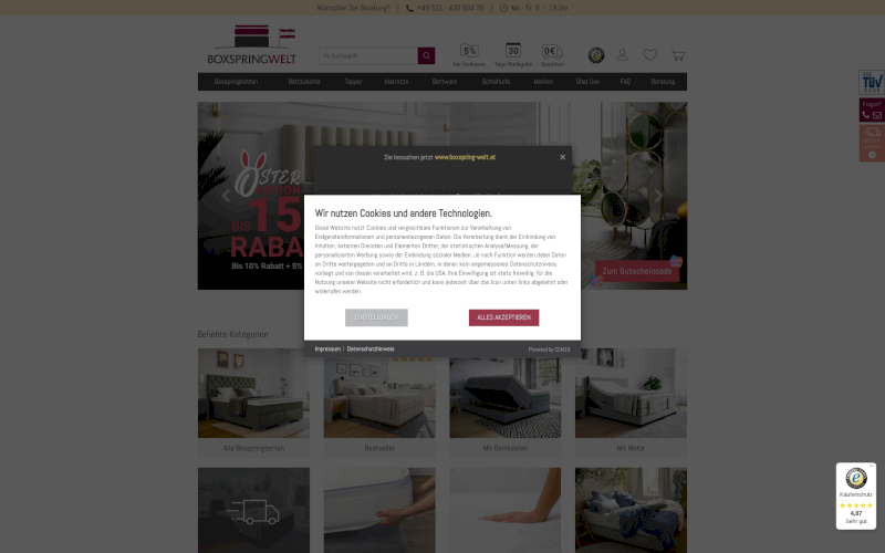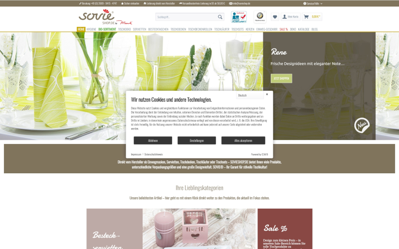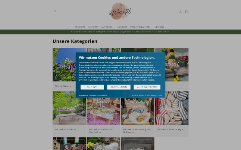 Das Herzstück von CCM19 für Ihre Einzelhändler Webseite, Onlineshop oder sonstige Applikation - der Cookie Banner für Einzelhändler. Mit diesem Banner realisieren Sie auf Ihrer Webseite die notwendige Zustimmung zum Setzen von diversen Cookies und zum ausführen von (Tracking)Skripten.