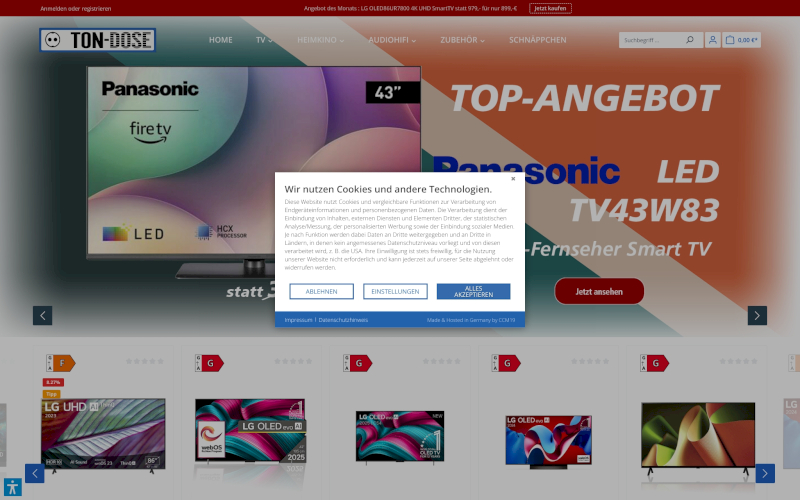 Das Herzstück von CCM19 für Ihre Elektro-Online-Shops Webseite, Onlineshop oder sonstige Applikation - der Cookie Banner für Elektro-Online-Shops. Mit diesem Banner realisieren Sie auf Ihrer Webseite die notwendige Zustimmung zum Setzen von diversen Cookies und zum ausführen von (Tracking)Skripten.