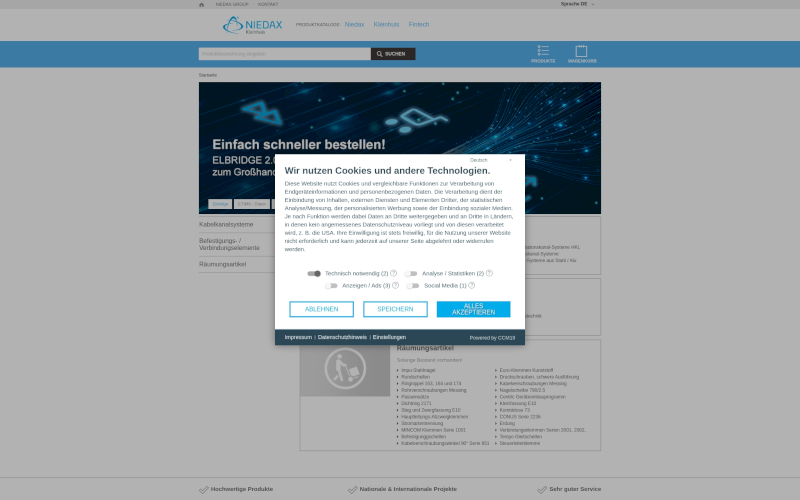 Cookie Banner für Elektrogroßhändler